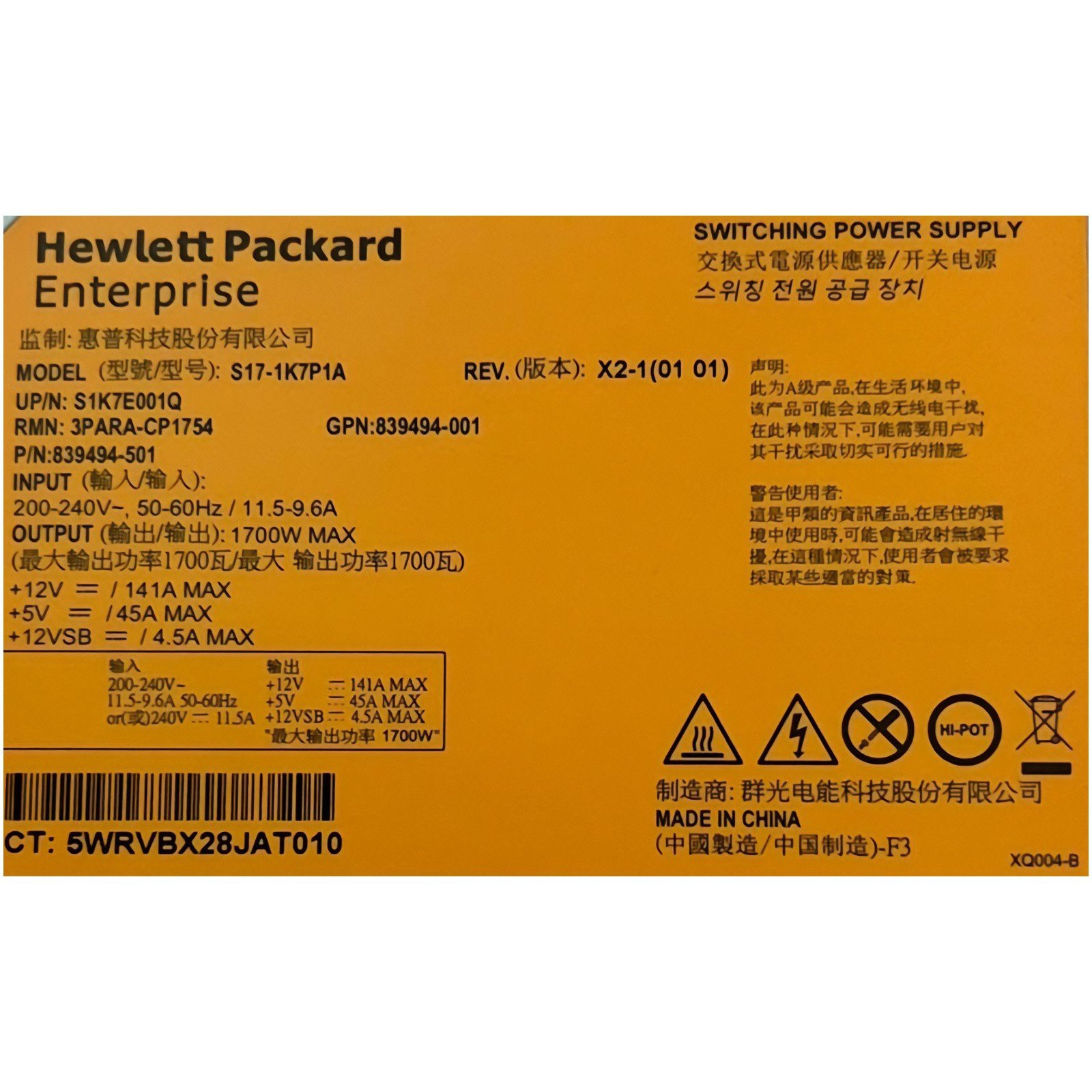 Hewlett Packard Enterprise S17-1K7P1A S1K7E001Q 3PARA-CP1754 839494-001 1700w