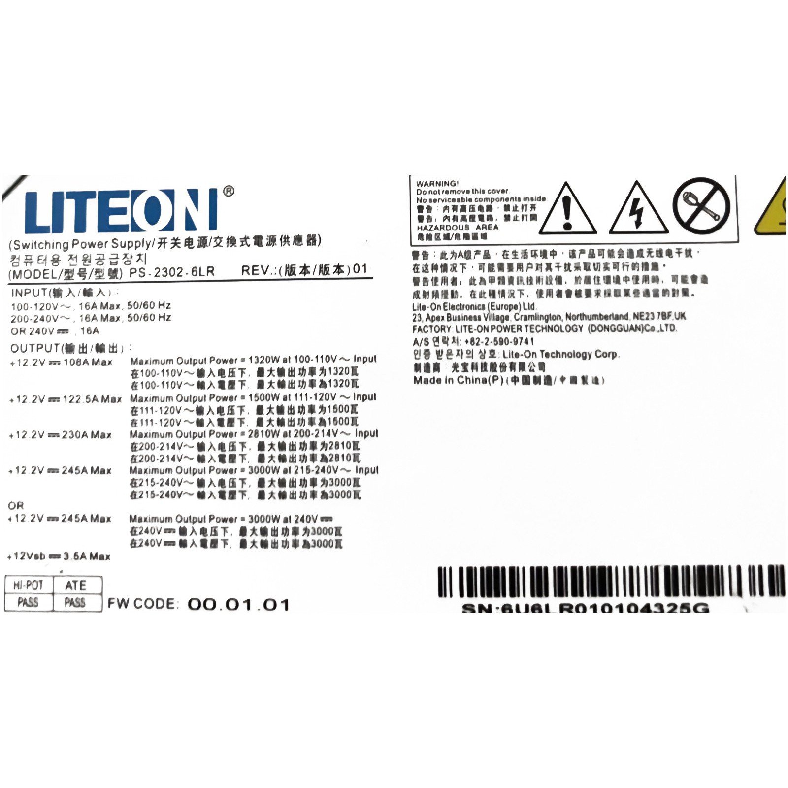 Lite-On PS-2302-6LR 3000w